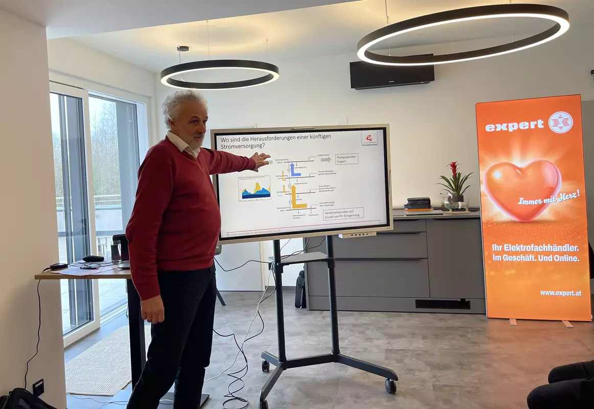 Kürzlich versammelten sich Expert-Mitgliedsbetriebe in Ardagger, um sich über die wirtschaftlichen Rahmenbedingungen und technologischen Trends der Branche zu informieren. Im Mittelpunkt standen dieses Jahr insbesondere die Elektrifizierung und die Schlüsselrolle von Stromspeichern für ein klimaneutrales Energiesystem. Nach der Begrüßung durch Expert-Geschäftsführer Alfred Kapfer wurde der Workshop mit der Unternehmensvorstellung von Gastgeber Expert Froschauer durch Helmut und Matthias Freynhofer eröffnet.