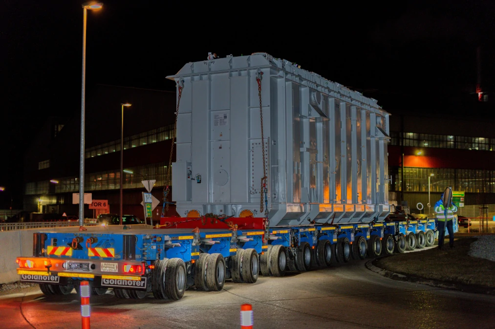 Der von Siemens Energy in Weiz gefertigte Stromriese ist rund 10 Meter lang, 3,5 Meter breit und 4,6 Meter hoch. Am Firmengelände von voestalpine AG in Donawitz wurde er mittels Hubgerüst auf ein PST-Fahrzeug umgeladen – eine selbstfahrende Plattform, die per Fernsteuerung auf der Straße manövriert wird. „Die rund 2,5 Kilometer lange Fahrt bis zum UW Leoben dauerte rund eine Stunde und erforderte ein hohes Maß an logistischer Präzision und technischer Kompetenz. Das Gesamtgewicht und die Dimensionen des Transformators stellten dabei hohe Anforderungen an alle Beteiligten“, sagt Wolfgang Ranninger, Projektleiter der APG.