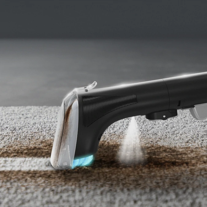 - Multi-Reinigungsfunktion mit austauschbaren Aufsätzen, die Wasser, Schrubben und kräftiges Saugen kombiniert