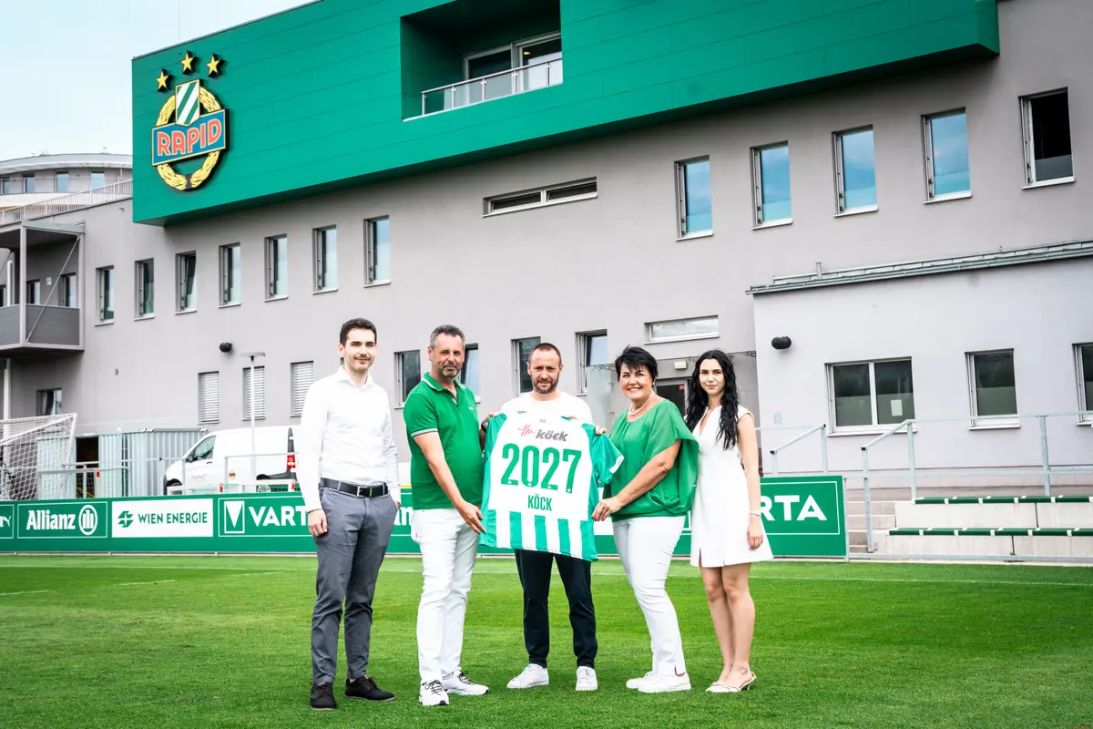 Seit 2021/22 ist Elektro-Shop Köck als Teampartner ein Teil der Rapid-Familie. Nun erweitert der im Oktober 2004 gegründete Elektrofach- und Onlinehändler für die beiden kommenden Spielzeiten (25/26 und 26/27) sein Engagement in Hütteldorf.