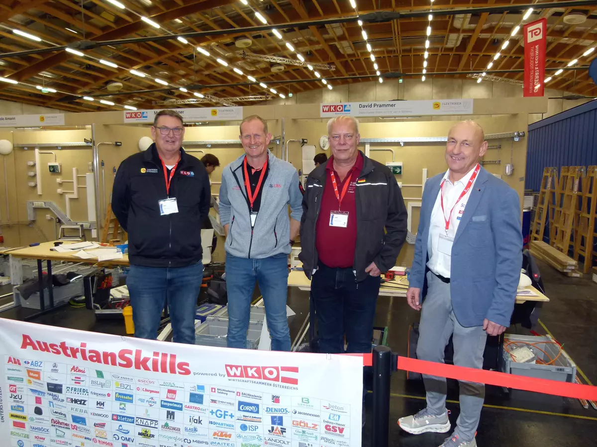 Gute Kontakte zwischen den deutschsprachigen Ländern (v.l.): Skills-Experte Hannes Ruscher aus Österreich, der Schweizer Adrian Sommer (ist auch offizieller EuroSkills-Chef-Experte), Torsten Lippoldt (Chef-Experte Deutschland) sowie Bernhard Pabinger (Sprecher Aus- und Weiterbildungsausschuss der Bundesinnung). © Wolfgang Sedlak