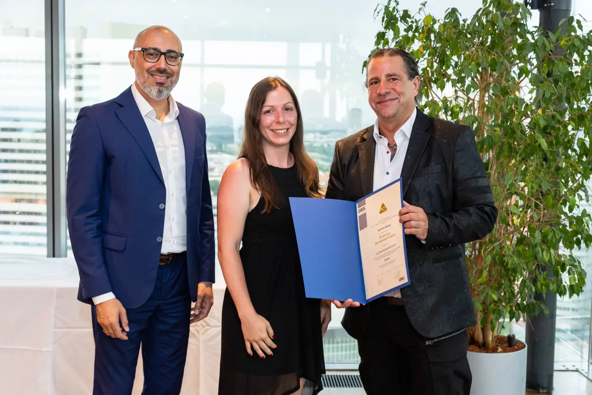 Besonders langjährige Mitarbeiter:innen mit 20 oder mehr Jahren Betriebszugehörigkeit erhalten zusätzlich ein Diplom sowie die Mitarbeitermedaille der Wirtschaftskammer Wien. Die Dienstältesten Geehrten können heuer auf eine beeindruckende 40-jährige Treue zu ihrem Unternehmen zurückblicken. Übergeben wurden die Auszeichnungen von Innungsmeister Christian Bräuer und Landesgeschäftsführer Ehsan Ajdari.