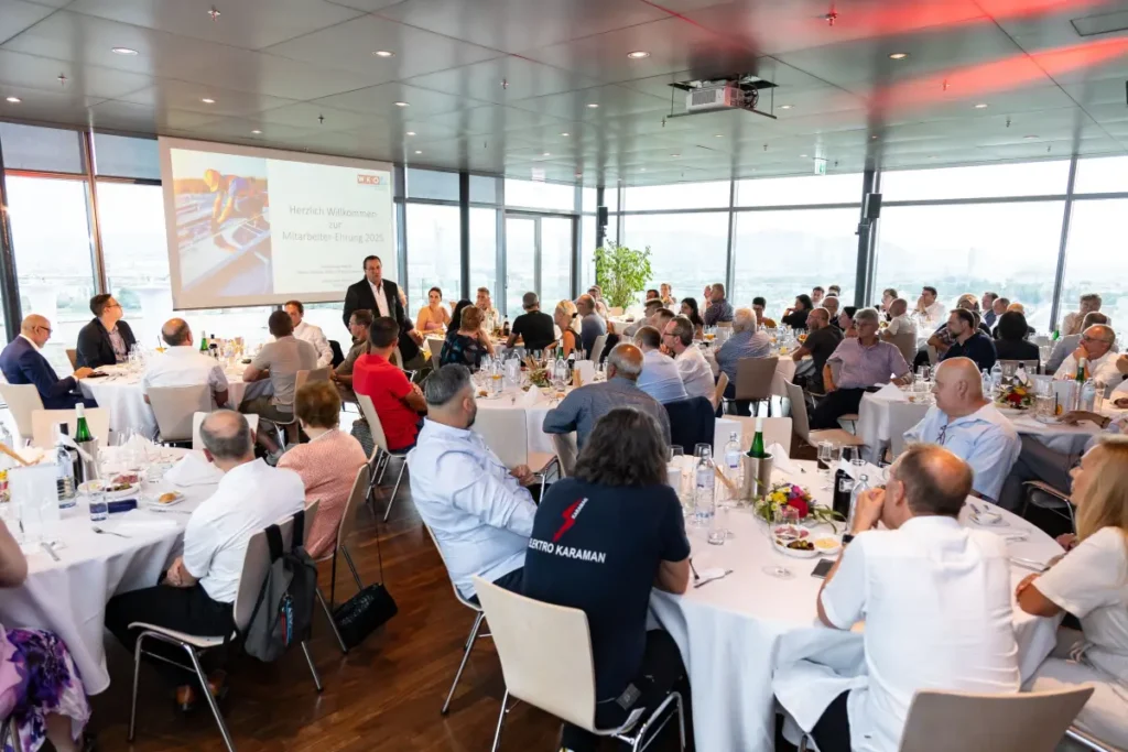 Die Ehrung langjähriger Mitarbeiter:innen 2025 war mehr als nur eine formelle Zeremonie – sie war ein sichtbares Zeichen der Wertschätzung für jene Menschen, die durch ihre Treue und ihren engagierten Einsatz die Elektrobranche maßgeblich mitgestalten. In einer Zeit des Wandels und der technologischen Herausforderungen bilden sie das stabile Fundament, auf dem die Zukunft der Branche aufbaut. Dabei wird der spektakuläre Ausblick von der Wolke21 wird den Geehrten sicherlich ebenso in Erinnerung bleiben wie die Anerkennung, die ihnen an diesem besonderen Tag entgegengebracht wurde.
