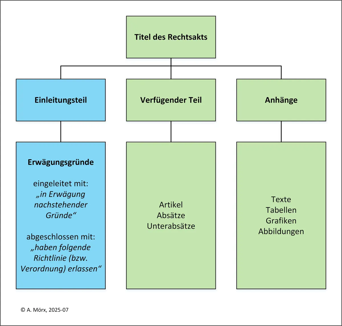 Manche Texte in EU-Richtlinien und Verordnungen sind beim ersten Lesen schwierig zu verstehen. In vielen Fällen können jedoch schon aus der Kenntnis der Absichten, die der EU-Gesetzgeber verfolgt, wertvolle zusätzliche Informationen gewonnen werden. Welche wesentlichen Teile enthält nun eine EU-Richtlinie oder eine EU-Verordnung? Was steckt hinter der Bezeichnung Erwägungsgründe? In Fortsetzung des Überblicks aus Heft 05/2025 soll eine weitere kleine Lesehilfe angeboten werden.