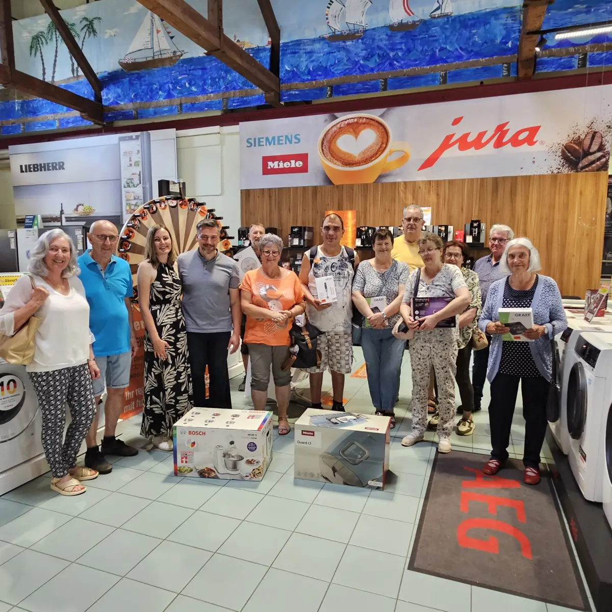 Ein besonderes beliebtes Highlight war auch das Glücksrad, bei dem jeder Kunde garantiert einen Gewinn mit nach Hause nehmen konnte. Zu den Preisen zählten unter anderem hochwertige Produkte von Markenherstellern wie Miele, Bosch oder Grundig.