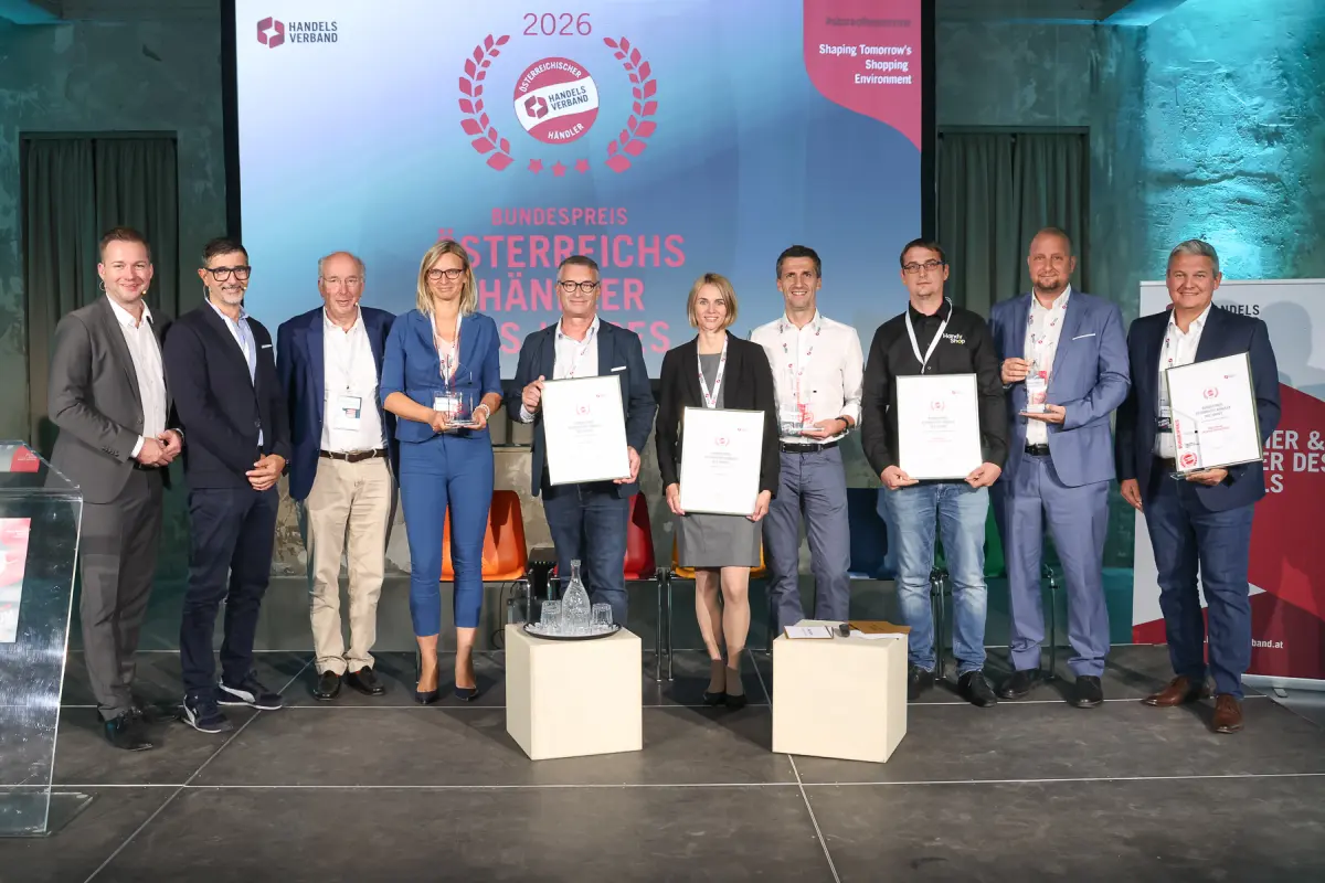 Die Gewinner des Bundespreises „Österreichische Händler des Jahres 2025“. © Handelsverband/Katharina Schiffl