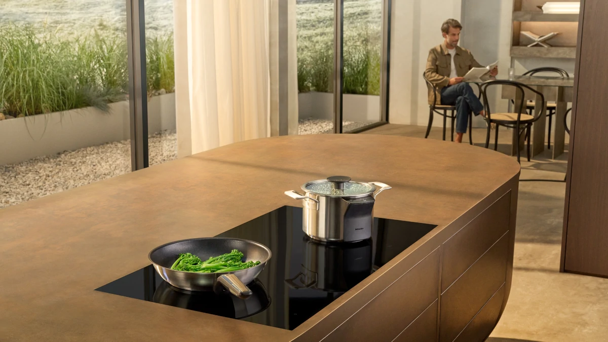 Auf der IFA 2025 präsentiert Miele ein intelligentes Zusammenspiel aus dem Kochgeschirr „M Sense“ und den neun Induktionskochfeldern KM 8000.