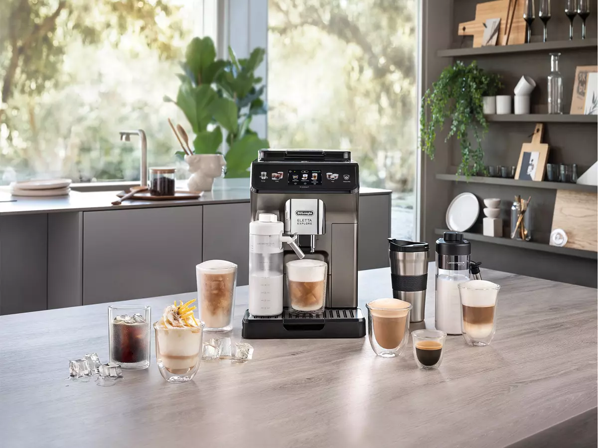 Heiße Klassiker oder erfrischende Cold Brews: Mit über 50 Rezepten, LatteCrema Hot & Cool System und App-Steuerung wird jede Tasse zum Erlebnis. Die Eletta Explore passt zu allen, die Vielfalt lieben und Wert auf smarte Bedienung legen.