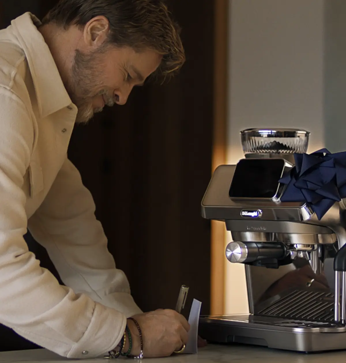 Markenbotschafter Brad Pitt schreibt schon mal seinen Wunschzettel ans Christkind. © De’Longhi
