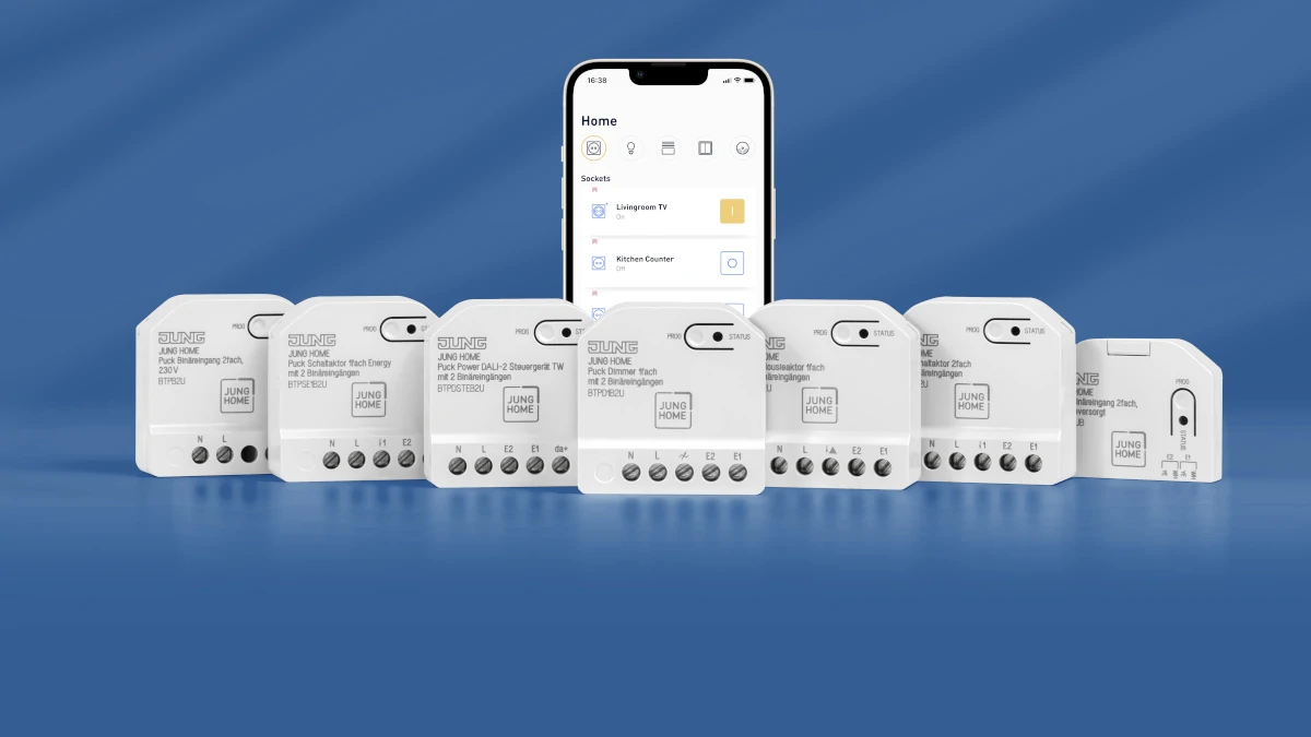 Unter dem Motto „Go smart“ erleichtert Jung mit den neuen Pucks die budgetbewusste und flexible Einrichtung intelligenter Gebäudetechnik, insbesondere zur Nachrüstung in Wohnbauten und Mietwohnungen. Jung Home Pucks können hinter den Abdeckungen beliebiger Hersteller montiert werden. Sie eignen sich für alle, die ein zukunftssicheres Smart Home einfach umsetzen wollen – ohne aufwendige Umbauten und mit Komponenten aus deutscher Markenproduktion.