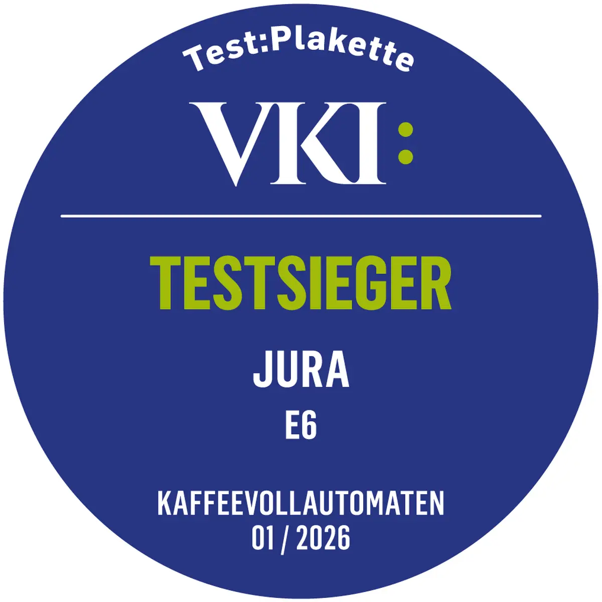Im Zentrum stand allerdings die Qualität der zubereiteten Kaffeespezialitäten, die 60 Prozent des Urteils ausmachte: Drei Kaffee-Sommeliers bewerteten Aussehen, Geruch, Geschmack und Mundgefühl. Die Jura E6 erfüllt alle Anforderungen mit Bravour und wurde mit der Bestnote „gut“ (70 Punkte) bewertet. Sie landet damit gemeinsam mit einem weiteren Hersteller auf Platz 1 von elf getesteten Kaffeevollautomaten.