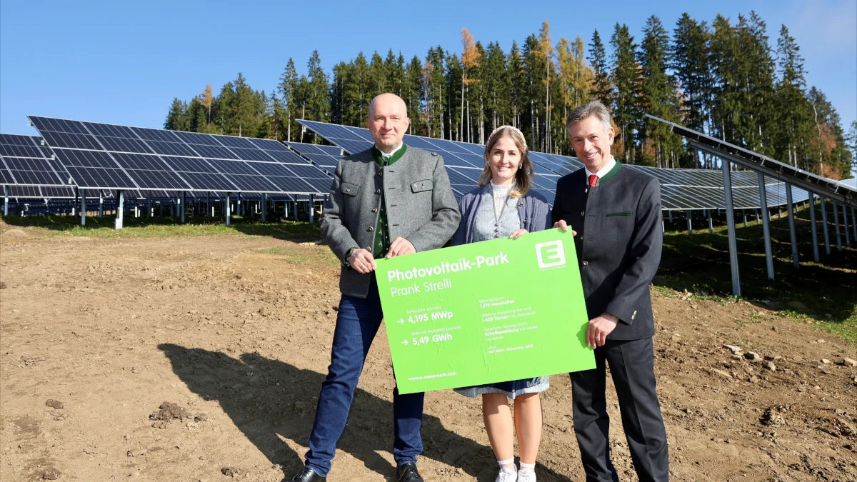 Energie Steiermark nimmt Photovoltaik-Anlage Prank Strelli in Betrieb. Für 1.600 Haushalte der Gemeinde St. Marein-Feistritz produziert.