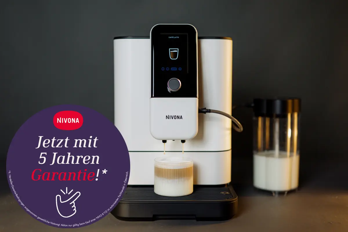 Guter Kaffee ist Vertrauenssache – sowohl beim Aroma als auch bei der Langlebigkeit der Technik. Nivona setzt hier ein deutliches Ausrufezeichen und flankiert die Einführung der neuen NIVO 8’112 in Cremeweiß mit einer attraktiven Garantieverlängerung. Unter dem Motto „Sicher ist sicher“ wird die gesetzliche Gewährleistung für Käufer im autorisierten österreichischen Fachhandel um satte 36 Monate erweitert. Das Besondere: Diese 5-Jahres-Garantie greift ganz ohne mühsame Registrierung.
