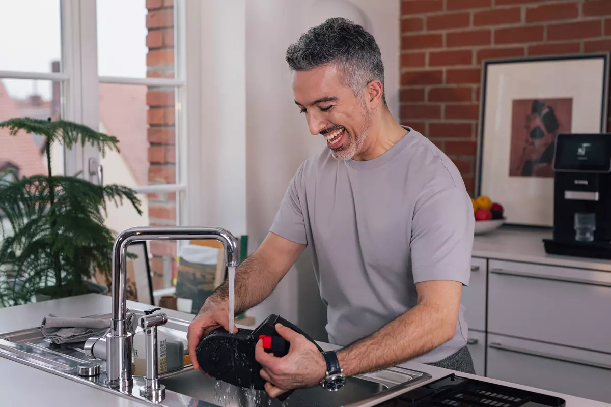 - Doppelmilchschlauch und easyclean+ für automatisches Reinigen des Milchsystems. Kein Umstecken des Milchschlauchs mehr nötig.