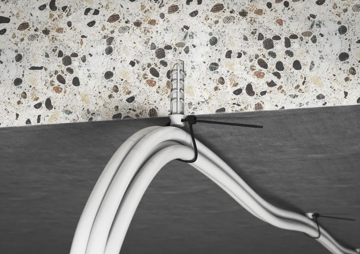• Der Schlaufendübel mit wiederverschließbarer Schleife erleichtert die Befestigung von Kabeln und Leitungen – und da ganze ohne Schrauben oder Werkzeug.