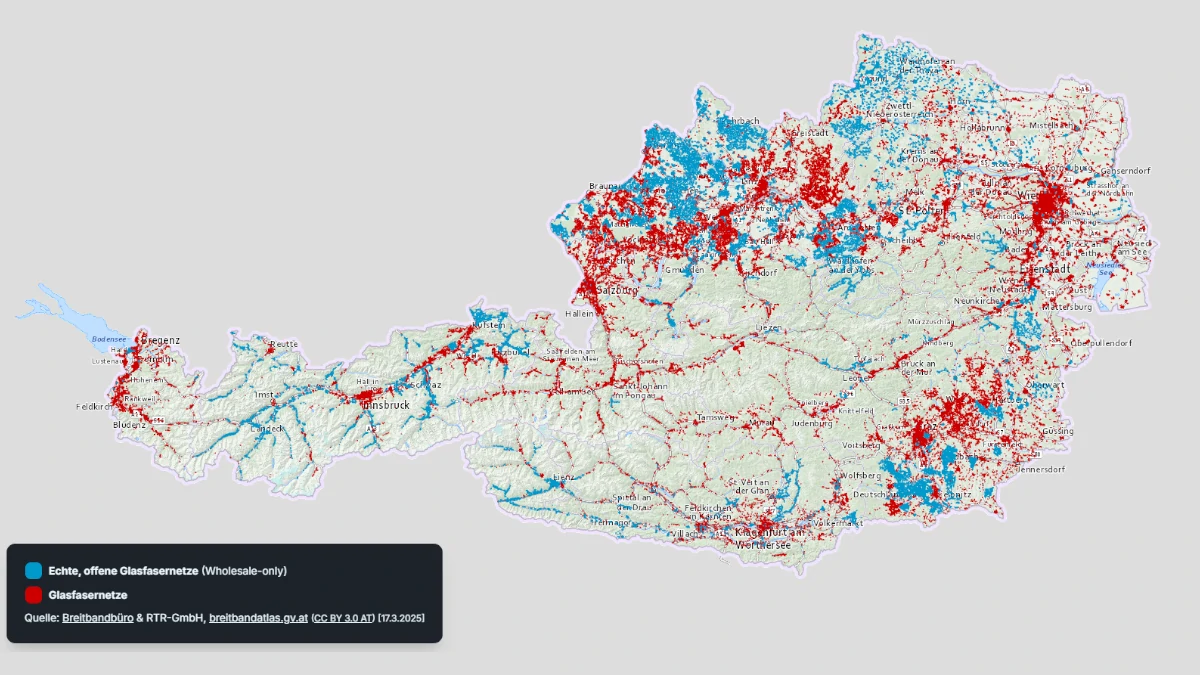 Zur österreichweiten Entwicklung: Anfang 2020 gab es rund 115.500 Glasfaseranschlüsse, 2024 bereits etwa 373.000. Dieser Trend setzt sich fort: Ende 2025 könnten rund eine halbe Million Anschlüsse erreicht werden. Trotz dieses rasanten Wachstums liegt Österreich im EU-Vergleich noch hinter Ländern wie Spanien oder Schweden zurück.