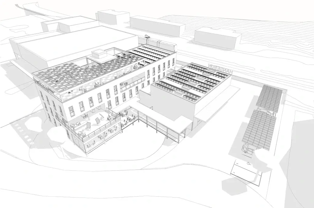 Photovoltaik-Spezialist Hansesun plant ein neues nachhaltiges Plus-Energie-Gebäude ohne Bodenversiegelung in St. Margrethen in der Schweiz.