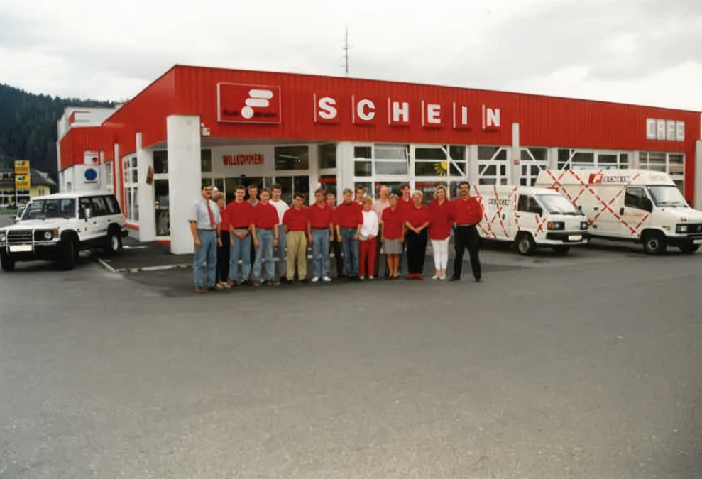 In den 1970er-Jahren traten die Söhne Otto und Gerhard Schein in das Familienunternehmen ein. Otto absolvierte die Meisterprüfung im väterlichen Betrieb, während Gerhard nach dem Besuch der BULME Graz als Lehrling begann und schon kurz darauf die neu eröffnete Filiale in Murau übernahm. Denn der Betrieb war längst gewachsen: Neben dem Stammgeschäft in Judenburg entstanden Filialen in Murau und Scheifling. Mit zunehmender Produktvielfalt wurde außerdem das Stadtlokal bald zu klein, und so folgte 1987 der Bau eines neuen Betriebsgebäudes in der Burggasse 116 – damals noch auf „grüner Wiese“ am Rande Judenburgs. Zunächst als Schauraum für Weißware und Servicestelle gedacht, entwickelte sich der neue Standort rasch zum zentralen Kunden-Anlaufpunkt.