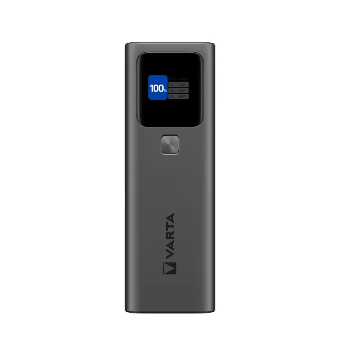 Die neue High-Speed Powerbank von Varta überzeugt mit einem eleganten, robusten Aluminiumgehäuse und durchdachten Details für maximale Sicherheit. Ein integriertes LCD-Display informiert über Ladezustand, Temperatur sowie Ein- und Ausgangsleistung, während die automatische Abschaltfunktion für einen sicheren Betrieb sorgt und vor Überhitzung schützt. Zusätzlich verfügt das Gerät über eine Temperaturwarnungsanzeige und regelt bei Bedarf die Ausgangsleistung selbstständig. Mehrere gummierte Flächen gewährleisten, dass die Powerbank sicher auf glatten Oberflächen steht.
