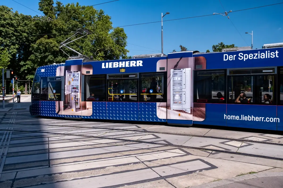 Liebherr-Hausgeräte setzt auf Sichtbarkeit im Wiener Stadtbild und bringt seine Kühlschränke quasi ins Rollen: Im August 2025 sind zwei gebrandete Straßenbahnen auf den Linien D und 31 in Wien unterwegs – als mobile Markenbotschafter im Rahmen der aktuellen Multichannel-Kampagne. Im Mittelpunkt steht die 10 Jahre Herstellergarantie, die aufgrund des großen Erfolgs bis Ende Oktober 2025 verlängert wurde und ein klares Zeichen für Qualität, Langlebigkeit und Innovationskraft setzt.